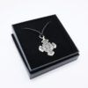 Korun koko on noin 40 x 35 mm. Hopeisen ketjun pituus on noin 48 cm.