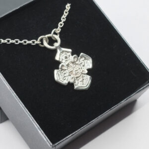 Korun koko on noin 40 x 35 mm. Hopeisen ketjun pituus on noin 48 cm.