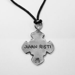 Juvan risti -riipuskorun esikuvana on eteläsavolaisen Juvan Partalan kuninkaankartanon peltoalueelta arkeologisissa tutkimuksissa löytynyt toistaiseksi ainutlaatuinen ristiriipus. Ristin koristelussa yhdistyy sekä ristisymboliikka että kansanomainen nauhaornamentiikka. Kauttaaltaan koristellulle ristille ei tunneta muualta vastineita. Sen omaperäinen koristelu viittaakin paikalliseen valmistukseen. Esine ajoittuu rautakauden loppupuolelle, itäsuomalaiseen ristiretkiaikaan 1100-1200-luvuille. Löytynyt ristiriipus on valamalla valmistettu tina-hopea-kupariseoksesta.