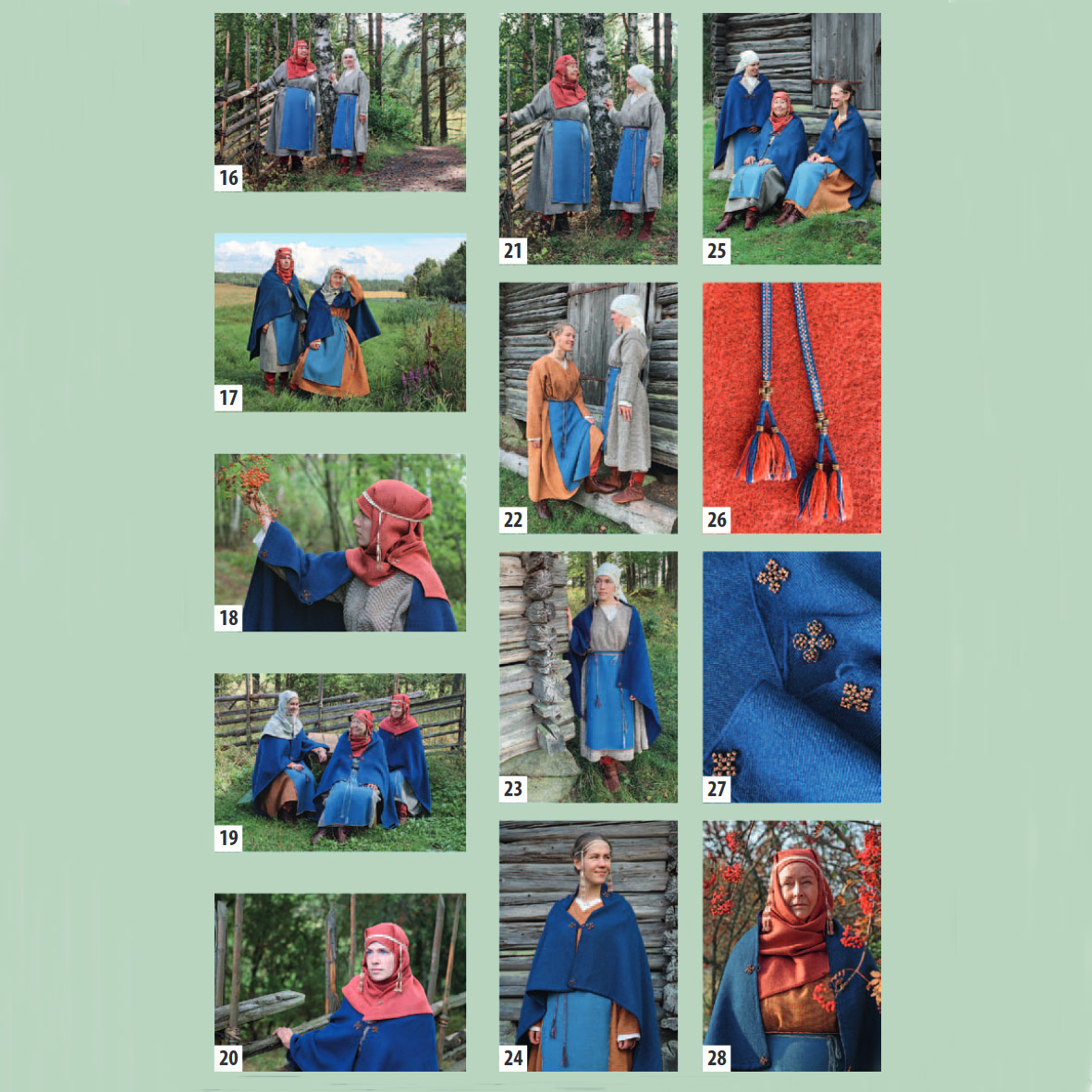 Kortit esittelevät muinaispukua sekä yksityiskohtien kautta että kokonaisuutena. Korttien osoitepuolella on kerrottu kunkin kortin kuva-aiheesta tiivistetysti.