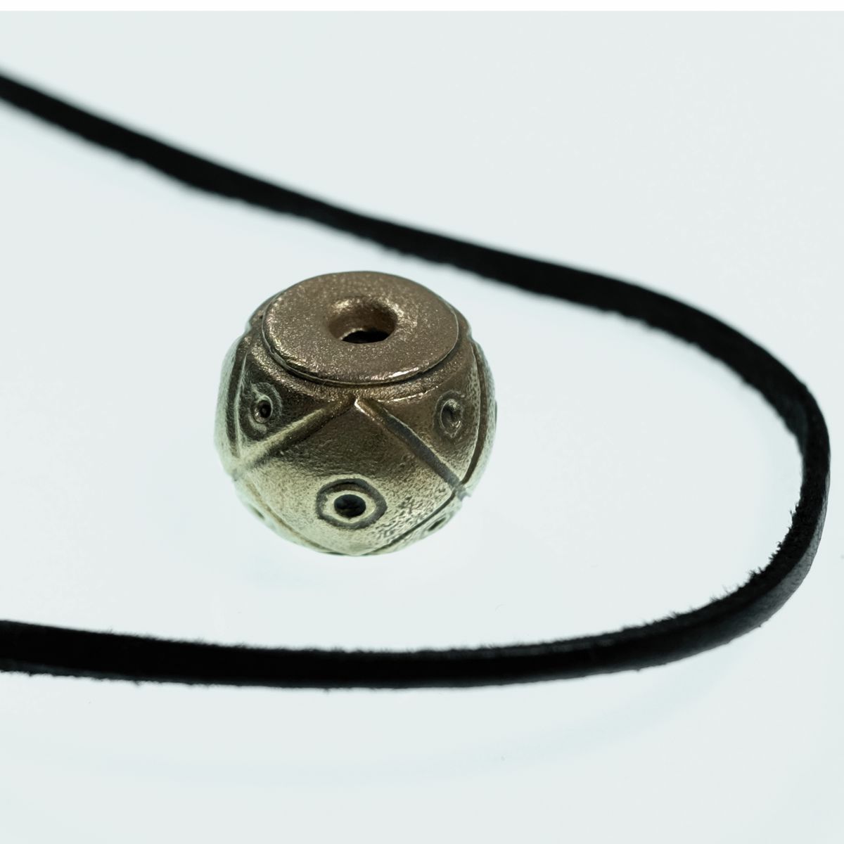 Helmeä on kannettu kaulalla nyörissä, joko yksittäin tai muiden pronssi- tai lasihelmien kanssa.