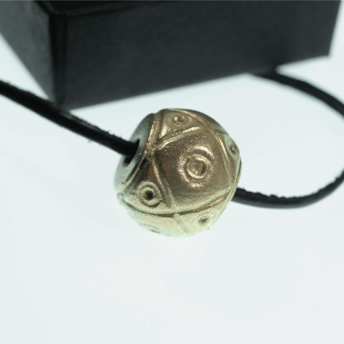 Alkuperäisen arkeologisen löydön esikuvaa toteuttavan pronssihelmen halkaisija on n. 18 mm, korkeus n. 15 mm ja reiän halkaisija n. 3 mm. Helmen paino on n. 20 g. Koru on kotimaista käsityötä ja sitä on tehty vain pieni erä. Koru tulee tummalla nyörillä varustettuna ja on pakattu korurasiaan.