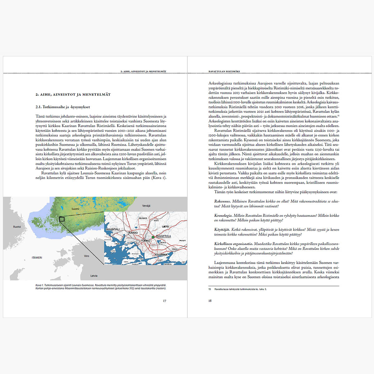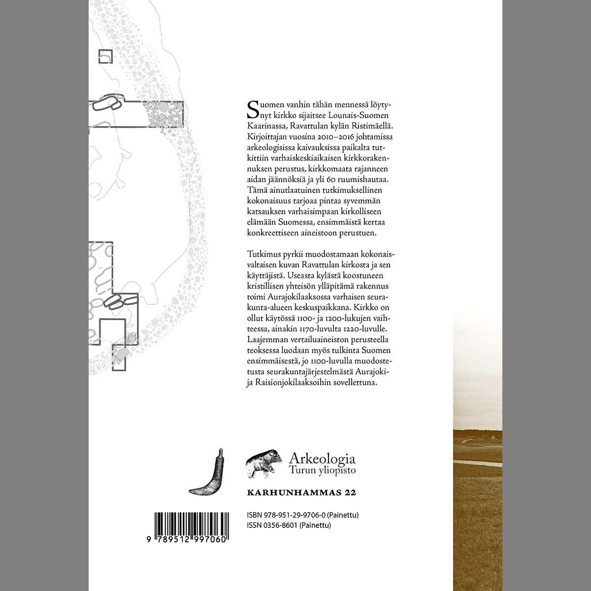 Suomen vanhin tähän mennessä löytynyt kirkko sijaitsee Lounais-Suomen Kaarinassa, Ravattulan kylän Ristimäellä. Kirjoittajan vuosina 2010–2016 johtamissa arkeologisissa kaivauksissa paikalta tutkittiin varhaiskeskiaikaisen kirkkorakennuksen perustus, kirkkomaata rajanneen aidan jäännöksiä ja yli 60 ruumishautaa. Tämä ainutlaatuinen tutkimuksellinen kokonaisuus tarjoaa pintaa syvemmän katsauksen varhaisimpaan kirkolliseen elämään Suomessa, nyt ensimmäistä kertaa konkreettiseen aineistoon perustuen.