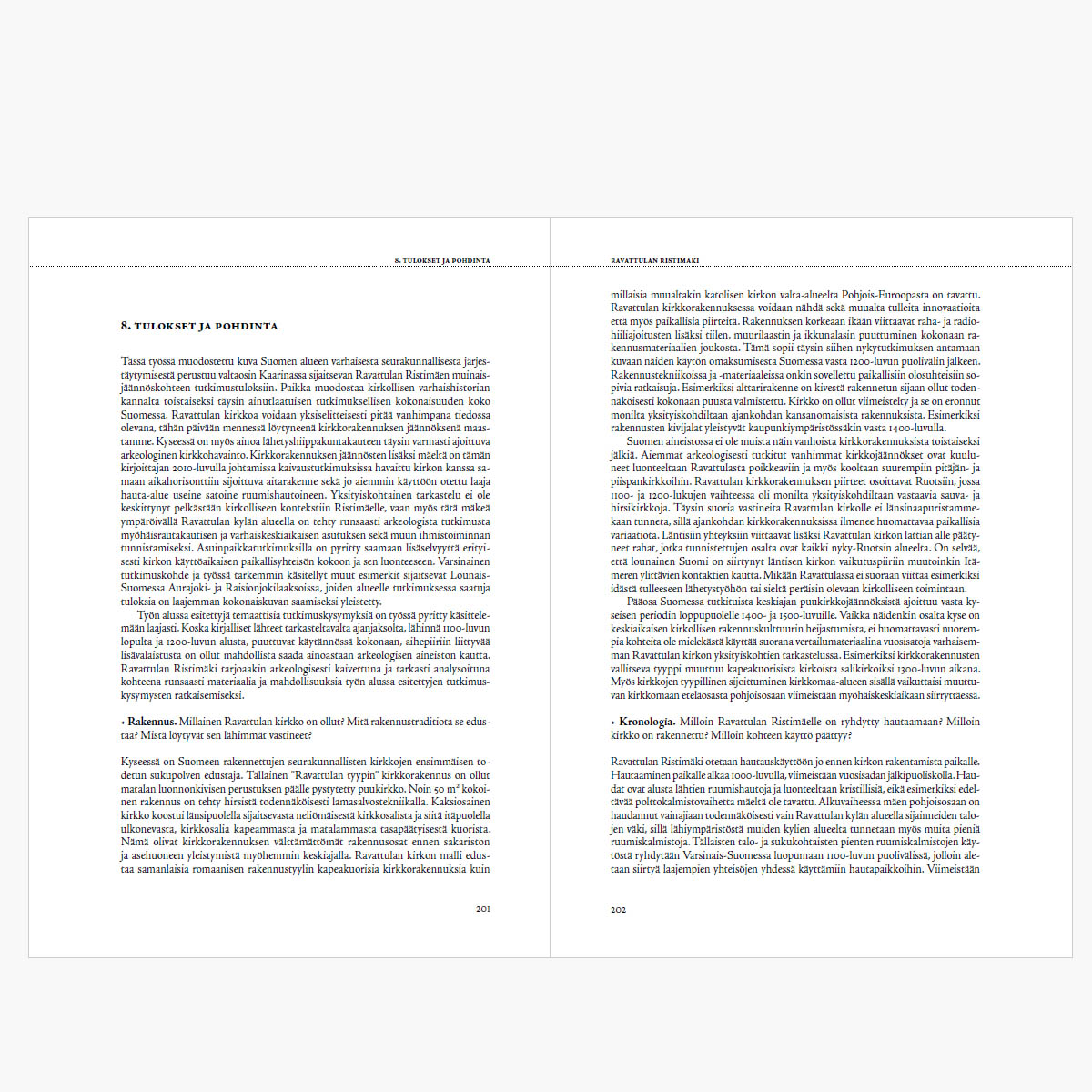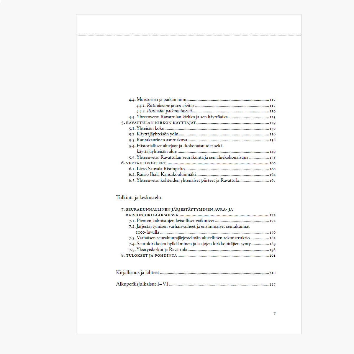 Väitöstutkimus pyrkii muodostamaan kokonaisvaltaisen kuvan Ravattulan kirkosta ja sen käyttäjistä. Useasta kylästä koostuneen kristillisen yhteisön ylläpitämä rakennus toimi Aurajokilaaksossa varhaisen seurakunta-alueen keskuspaikkana. Kirkko on ollut käytössä 1100- ja 1200-lukujen vaihteessa, ainakin 1170-luvulta 1220-luvulle. Laajemman vertailuaineiston perusteella teoksessa luodaan myös uusi tulkinta Suomen ensimmäisestä alueseurakuntajärjestelmästä 1100-luvun Aurajoki- ja Raisionjokilaaksoihin sovellettuna.